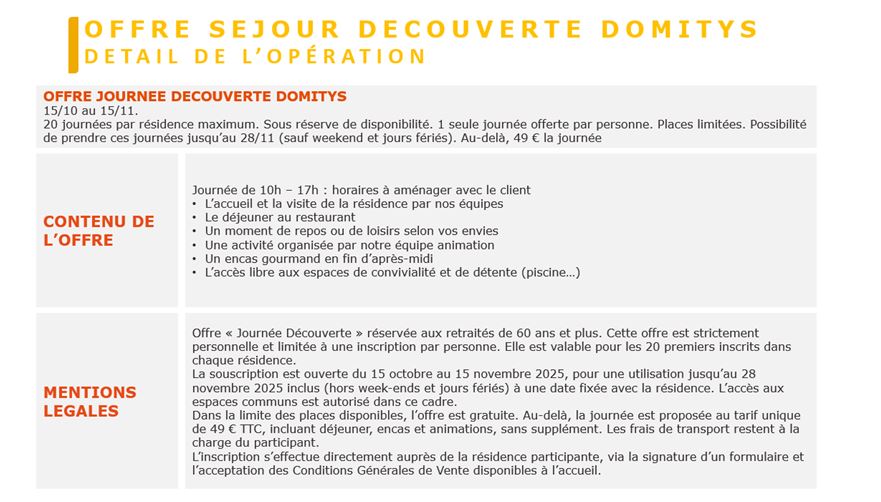 Domitys a d’ailleurs mis en place une journée découverte gratuite pour ces derniers dans une sélection de ses résidences .
